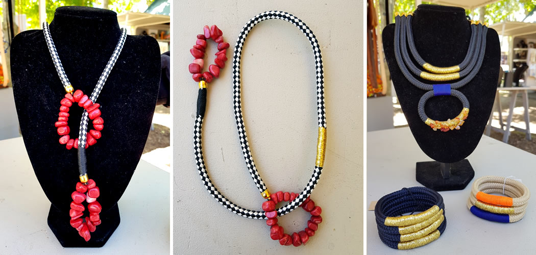 Elita Brooks makes striking costume jewellery with an African twist from rope, cotton, semi-precious stones and beads. Her range of necklaces earrings and bracelets are the perfect statement pieces to dress up a plain dress or top. She tells us more about her work: