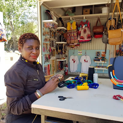 I currently make earrings bracelets and necklaces and I’m going to start making other products like flower baskets, I’m building the empire! I sell at some weekend markets as well as Spier. I’d like to open my own shop some day. Spier is working well for me, doing the magic!