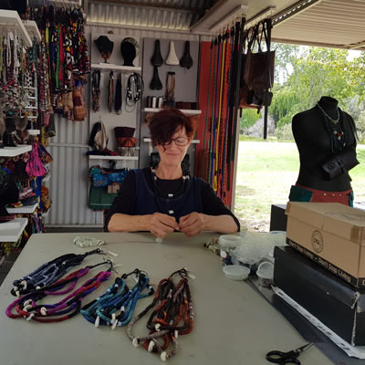 I work as a Kinesiologist in private practice, and the idea was to make some products that could go out into the world and supplement my income. When I saw Spier market was looking for artists we applied with our belts. Sue asked what else we made and Jenni had all her jewellery and hats.