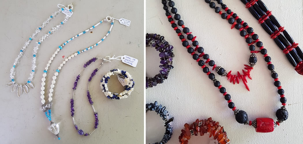 When I started taking my turns here at the market I wanted to make something while being there and started making necklaces and bracelets, harnessing my love of lava rock, coral and semi-precious stones.