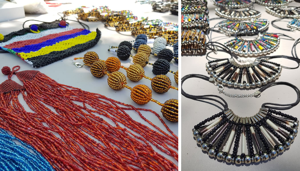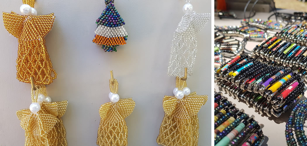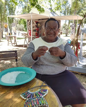 Maria Sikinya has been a long-standing fixture at the Craft Market at Spier, sitting at the heart of the market carefully making her jewellery pieces. She’s also made beaded Christmas decorations, angels and trees and has a line using recycled materials.