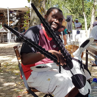 Visit the Craft Market at Spier to see Bongani’s beaded wirework sculptures. He’s usually there two or three days a week, so you can watch him work and see how he makes his pieces come to life.