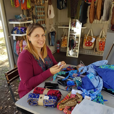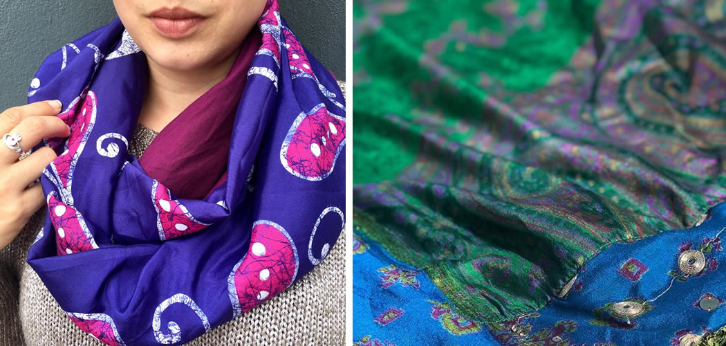 Under the brand name Misc. Clothing Lara Kelbe makes a range of oh-so-pretty accessories, scarves, snoods, T-shirts and jewellery from light and colourful Indian sari fabrics.