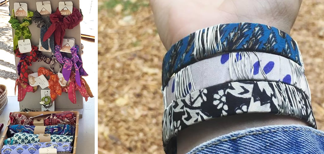 One sari will usually make about six pieces depending on whether I’m making scarves or T-shorts. The prints on each sari are all different and cool. So effectively I’m making limited edition pieces in that print. I’ll use up all the fabric of one sari on a few T-shirts and use the leftover scraps for hair ties and bands and on jewellery, so nothing is wasted.