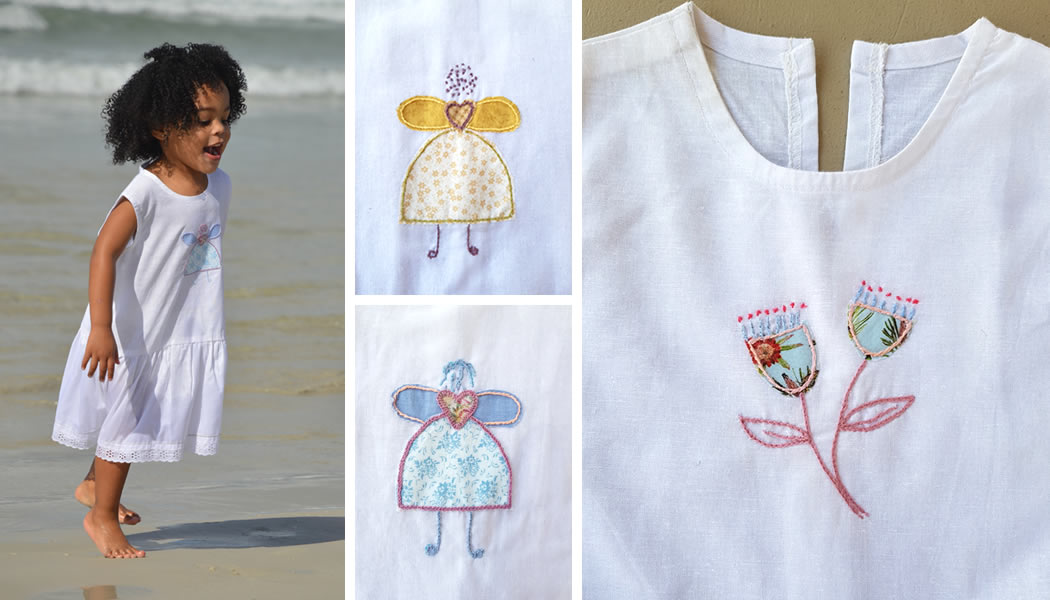 The uVuyo embroidery adds to the hand-made feel and gives it the African touch. Every flower is unique, every angel is unique. They came up with the angel design and it was perfect. It’s a child’s illustration of an angel, instantly recognizable to a child. It’s funky, it’s fun and I love the soft colours we are using now. The embroidery completes the story.