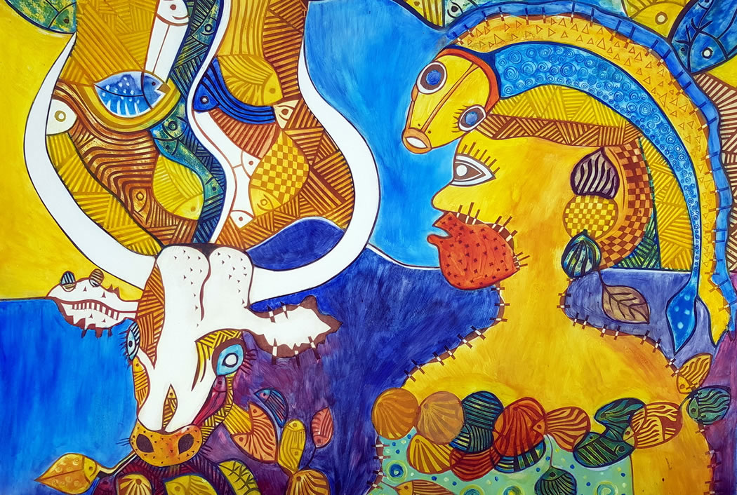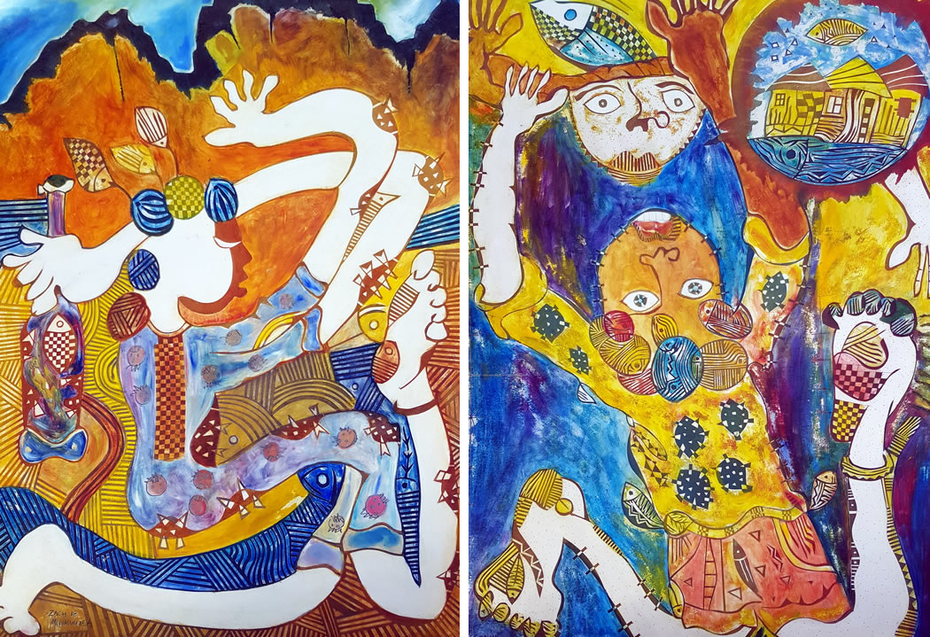 Zach Mukwira paints one-off original artworks in oils using a technique he evolved from printmaking. They are vibrant pieces with a contemporary African feel and have been exhibited in various galleries and exhibitions.