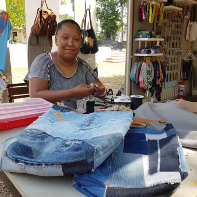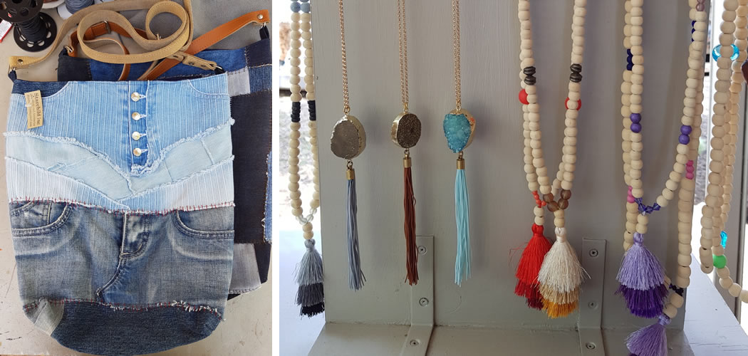 Wendy Herdien under the name Starchild Inc makes jewellery and a series of one-off bags made from upcycled denim jeans and patched with contrasting fabrics. Her Africa print bag is also a popular seller.