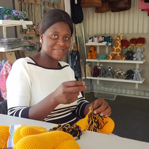 The friendly faces of crocheted lions, giraffes and rhinos have been a favourite with the smallest visitors to the Craft Market at Spier over the last two seasons. They are the work of Busy Hands, Adela Tambara and her team, who crochet and knit everything from African animals to creatures of the sea, mermaids and octopuses, as well as baby booties and beanies. Adela tells us more about Busy Hands.