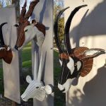 George Dokora makes life-like beaded wirework animals, both trophy heads to hang on the wall and standing sculptures, as well as a line of fruit bowls and small animals. He... Read More